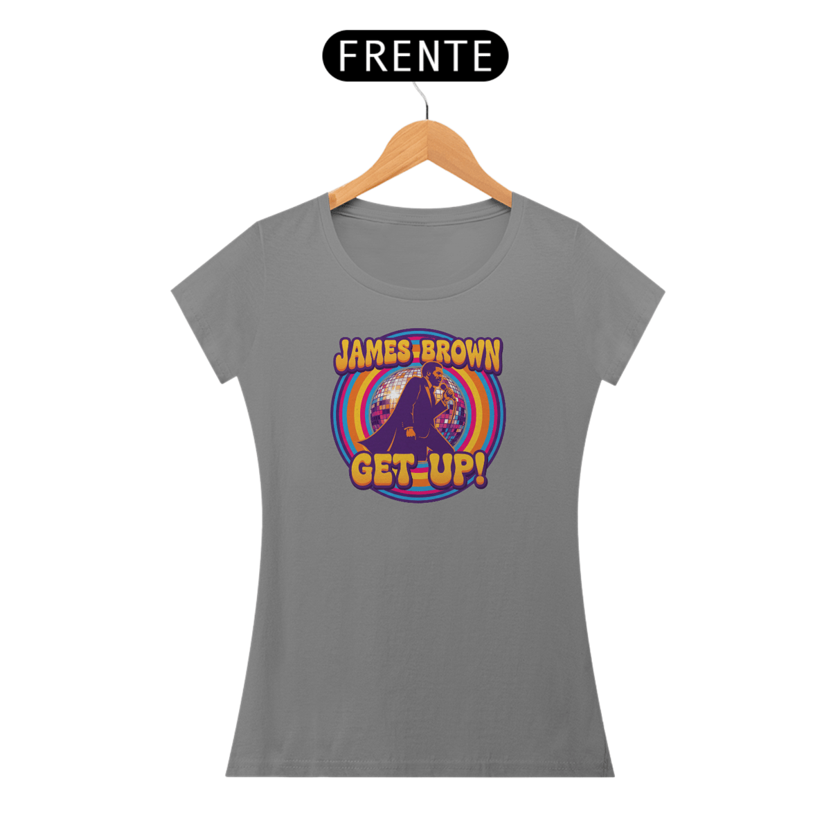 Estampa exclusiva James Brown. Reviva o brilho das noites de discoteca com a linha Flash Back: camisetas e babylooks 100% algodão, confortáveis e cheias de atitude. Estampas inspiradas nos anos dourados da música, do vinil ao globo espelhado, feitas para quem dançou, amou e marcou época. Vista sua história com estilo, nostalgia e qualidade. Garanta a sua e traga o melhor dos anos 70, 80 e 90 para o presente.
