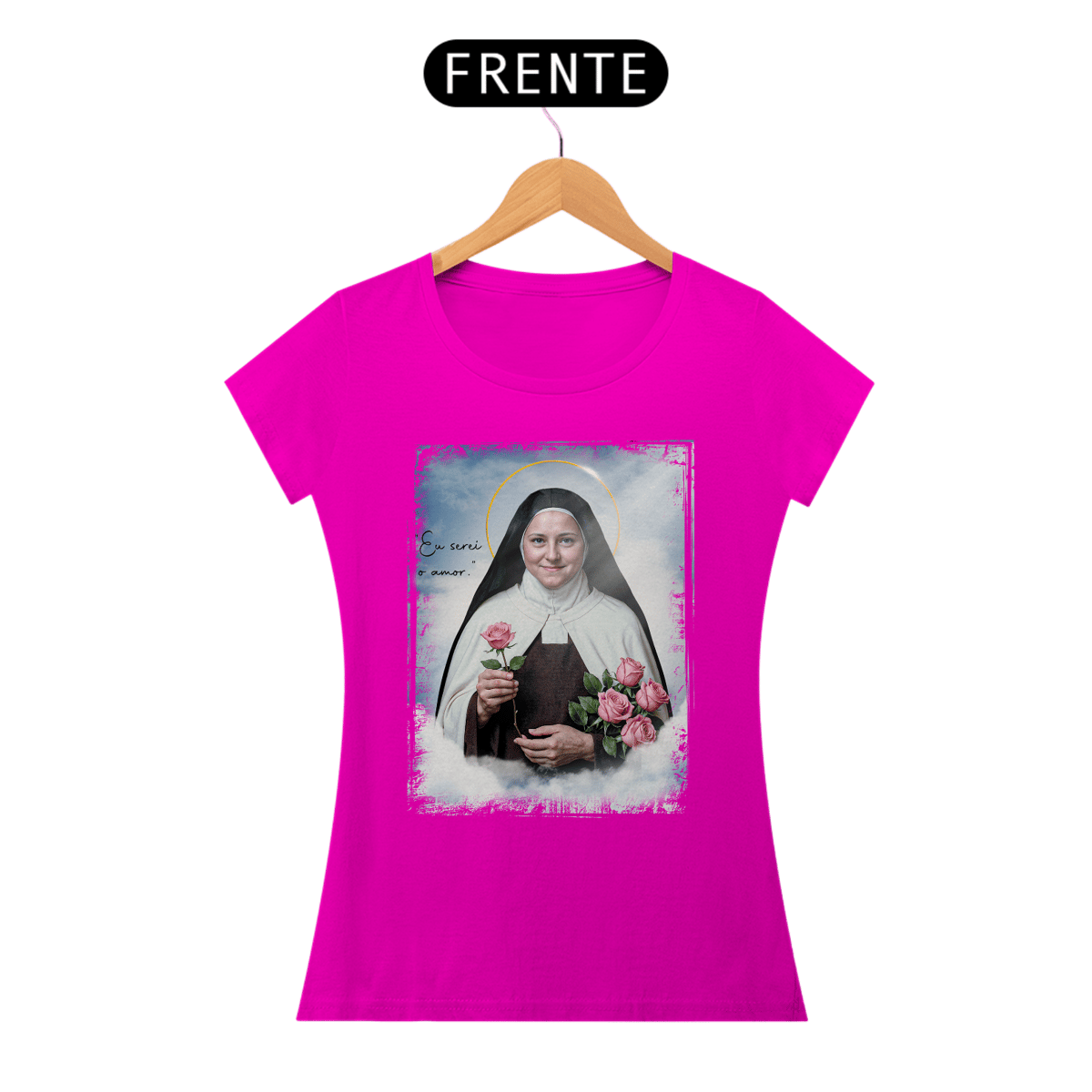 A babylook da Linha Católica – Santa Teresinha do Menino Jesus celebra a santa das pequenas coisas e do grande amor. Inspirada em sua história de simplicidade, confiança e entrega total a Deus, a estampa representa delicadeza, fé e perseverança. Confeccionada em 100% algodão, oferece conforto e beleza para acompanhar você na missa, no dia a dia e em momentos de oração. Vista a espiritualidade de Santa Teresinha e espalhe amor por onde for.