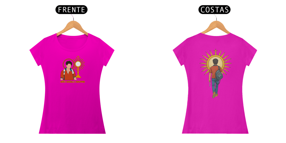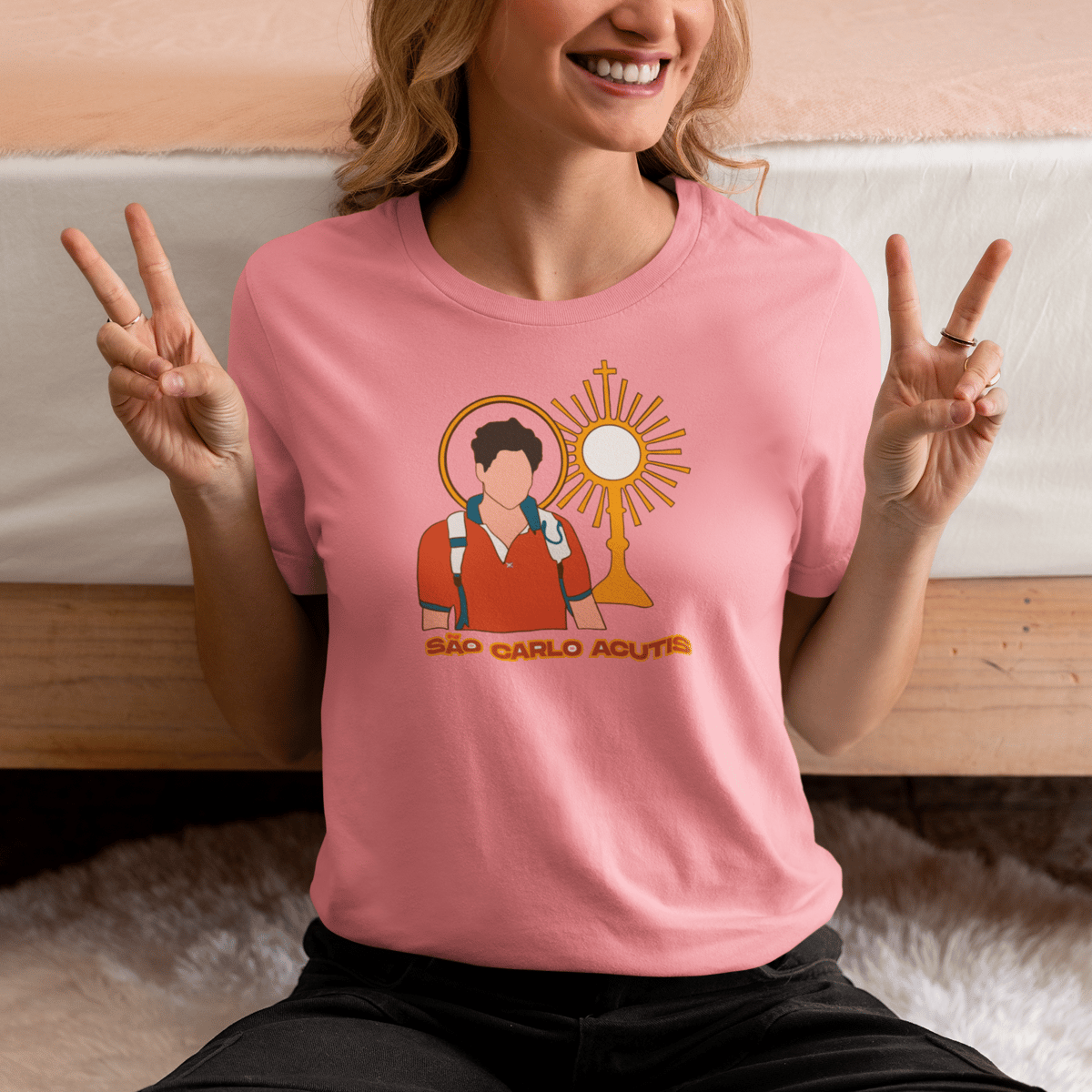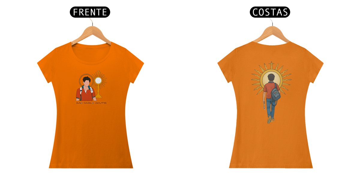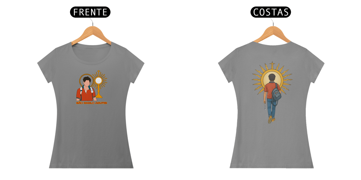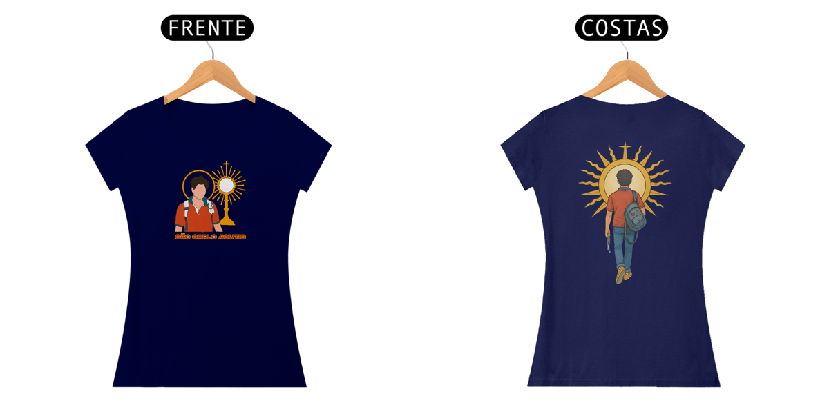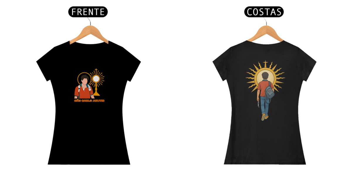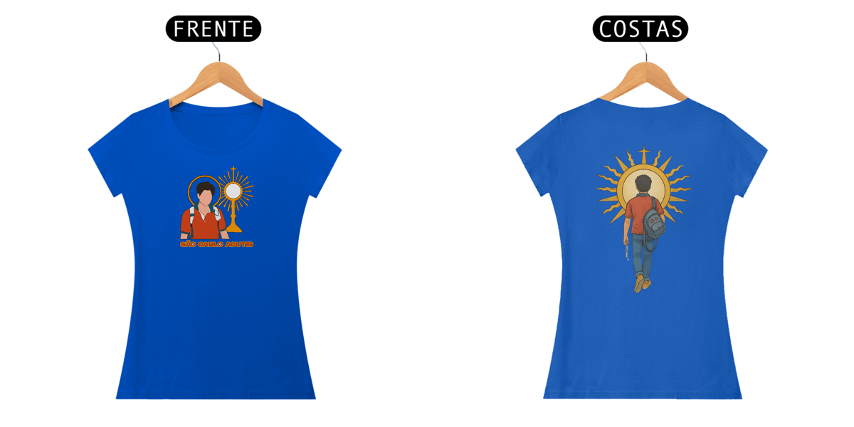 Apresentamos a babylook frente e verso de Carlo Acutis, pensada para mulheres de todas as idades que desejam expressar sua fé com estilo. Com estampa delicada e cheia de significado, a peça transmite identidade, devoção e beleza. Carlo, jovem santo e inspiração para o nosso tempo, toca corações com seu amor à Eucaristia e seu exemplo de vida. Conforto, qualidade e propósito em uma babylook feita para quem vive a fé no dia a dia.